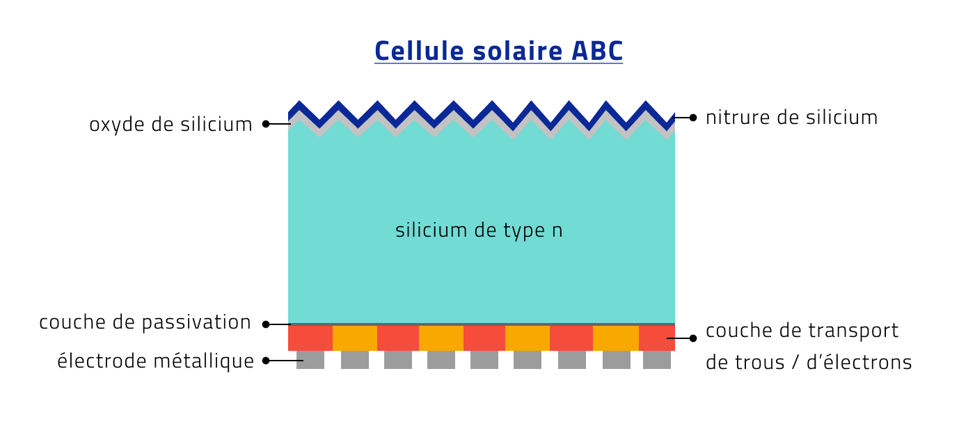 Derrière ces trois lettres se cache une petite révolution : ABC, pour All Back Contact, signifie que toutes les connexions électriques sont placées à l’arrière de la cellule solaire. Rien à l’avant, aucune ligne métallique, juste… de la lumière.